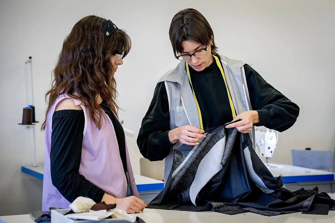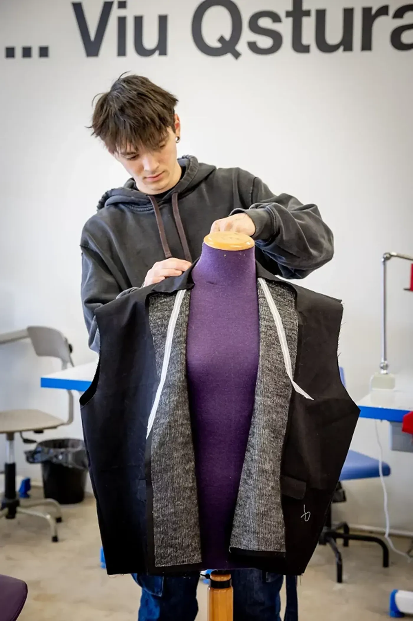 L’alumnat, mitjançant un seguit de classes pràctiques, ha seguit un procés complet de confecció per adquirir les habilitats bàsiques de sastreria i obtenir un resultat professional.🧵 S’han treballat les tècniques de costura industrials tot confeccionant una americana i uns pantalons de tall clàssic.