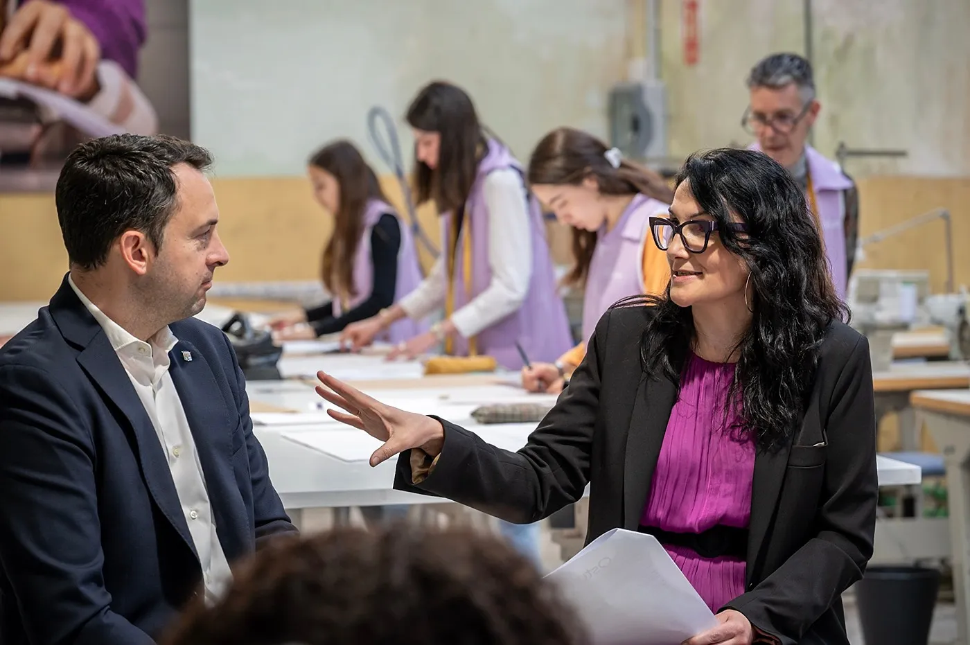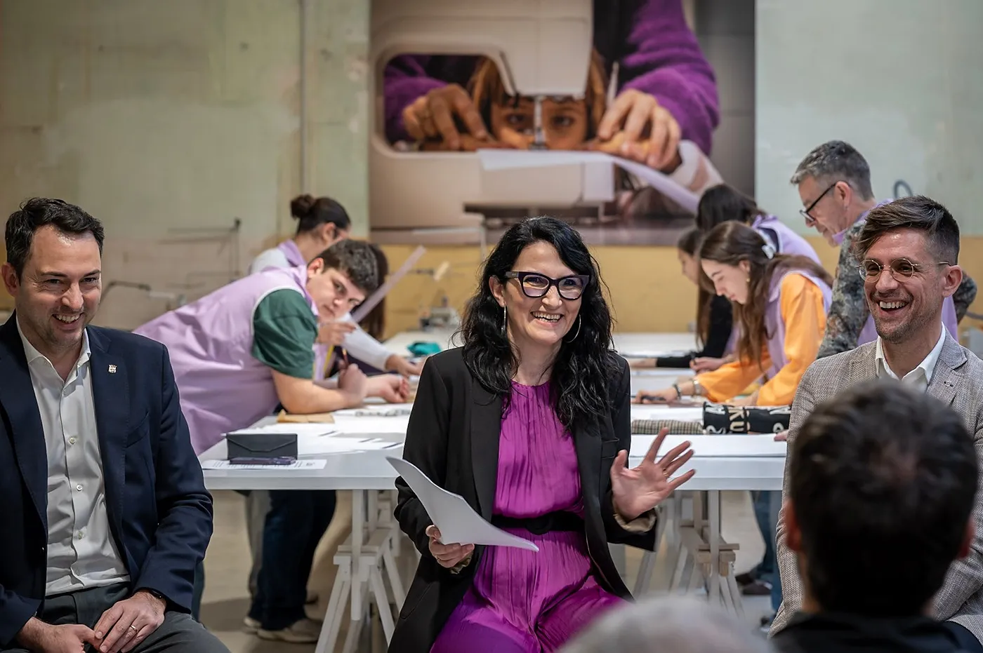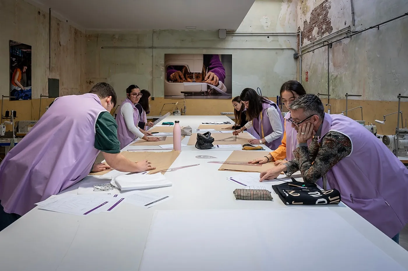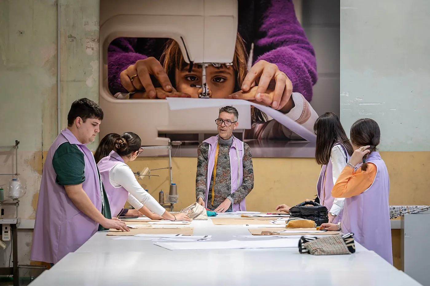 Un dels moments més especials de la jornada va ser la classe de patronatge en directe, que es va realitzar al taller principal de l’escola mentre tenia lloc la presentació.