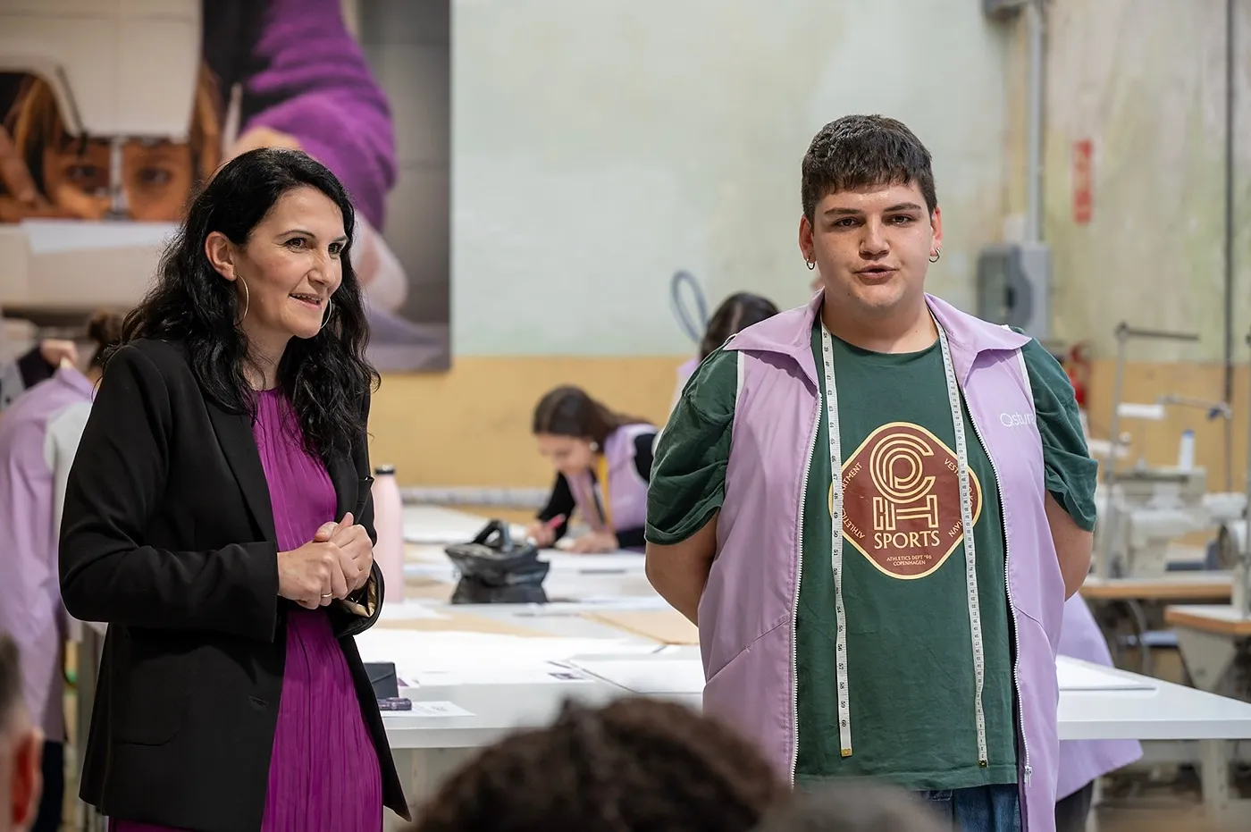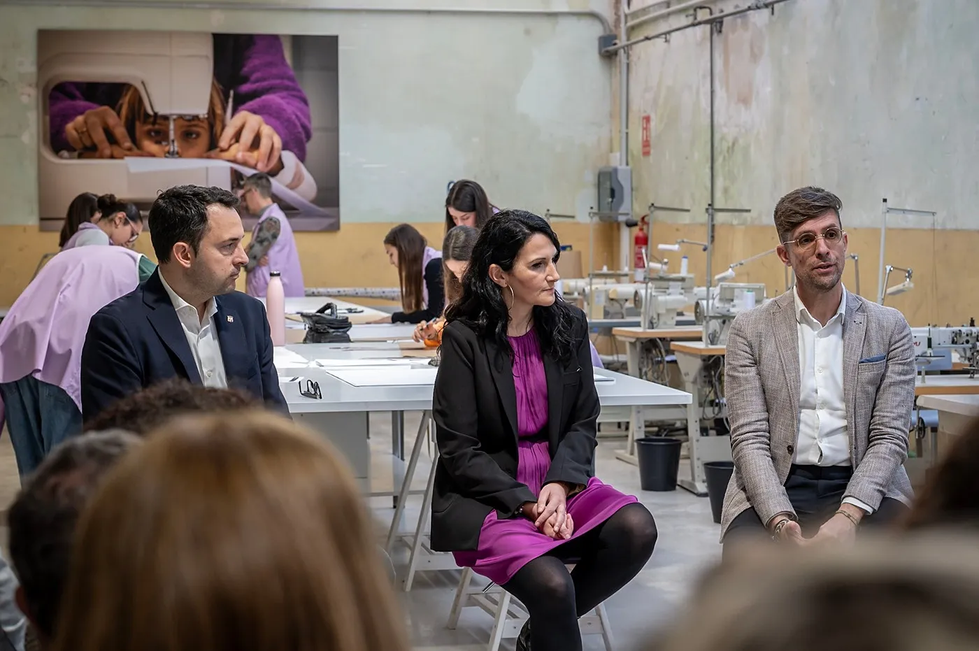 Durant l’acte també vam poder escoltar el testimoni de dues alumnes de moda de l’escola, que van compartir la seva experiència formativa i la seva trajectòria dins del món de la confecció i el patronatge.