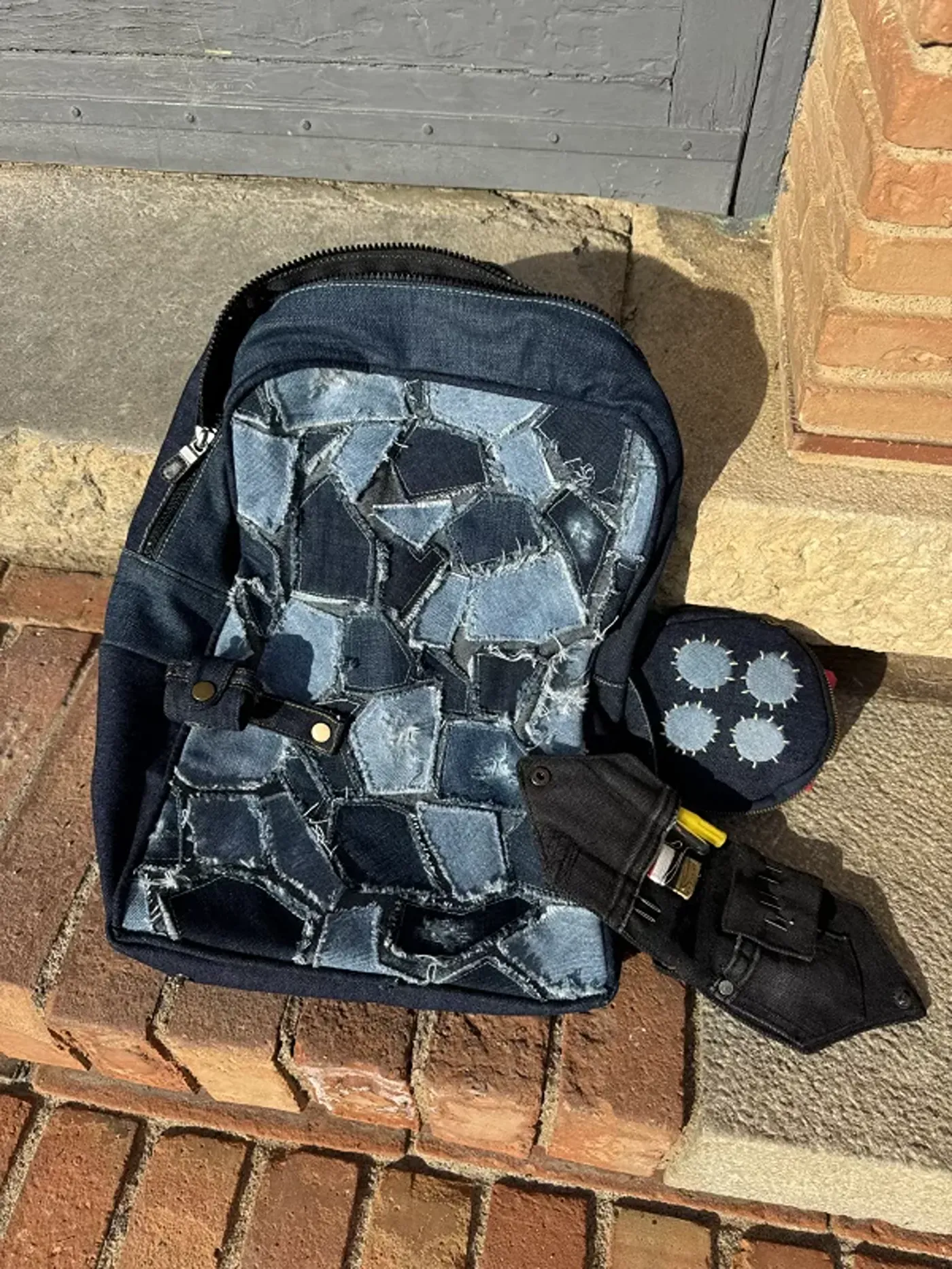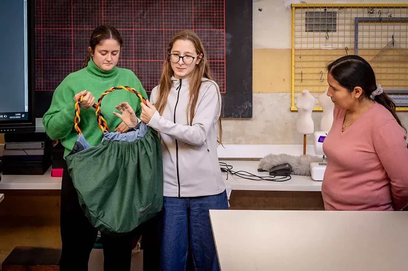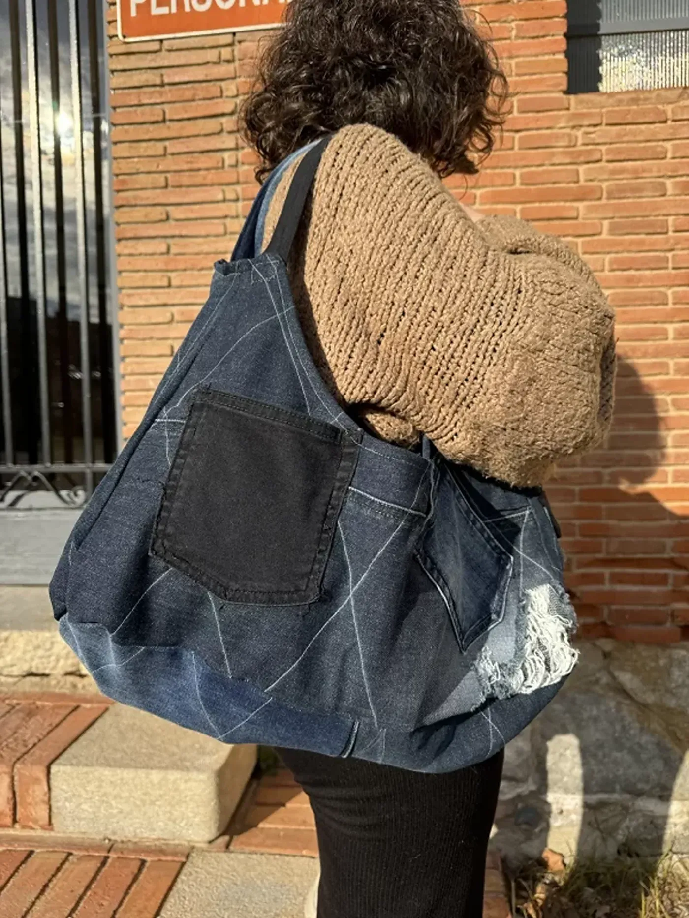 Inspirades per les bosses de mà d’Inditex, creen la idea de realitzar un complement estilós però de tamany més gran per a donar-li més utilitat en el dia a dia. Hi afegeixen butxaques als laterals, així com retalls esparracats dels pantalons originals per donar-li un toc més urbà i juvenil.